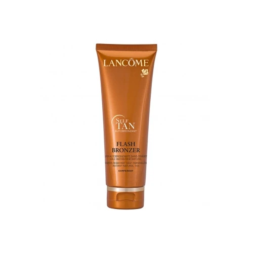 Lancôme crea la sua prima lozione per il corpo autoabbronzante Flash Bronzer. Si assorbe velocemente: effetto abbronzante per la tua pelle, non per i tuoi vestiti. Innovazione senza tracce: la sua formula colorata si applica rapidamente per assicurare un risultato ottimale e per permetterti di vestirti dopo solo qualche minuto. Benefici Come un raggio di sole illumina la pelle, la sua texture colorata guida l’applicazione per assicurarne l’uniformità. La sua formula, arricchita con agenti idratanti e Vitamina E, illumina la pelle di una bellezza sublime.